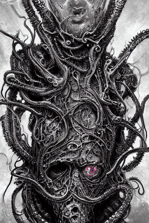 Prompthunt Realistic Portrait Of Beautifully Crystalized And Detailed Portrait Of A Biomech Zombie With Gasmask Tentacles Tendrils Eldritch Matte Painting Of Cinematic Movie Scene Red Dragon Horror Created By Gustave Dore And